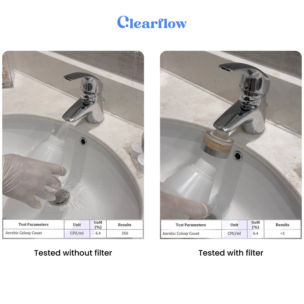 Clearflow is made specifically for GCC tap water, which often contains high levels of chlorine, rust, and bacteria. Unlike basic filters, Clearflow uses KDF-55+ activated carbon and PP cotton features a color-changing design, so you can actually see the filter trapping harmful particles. It's compact, tool-free, and delivers instant results you can feel and see.